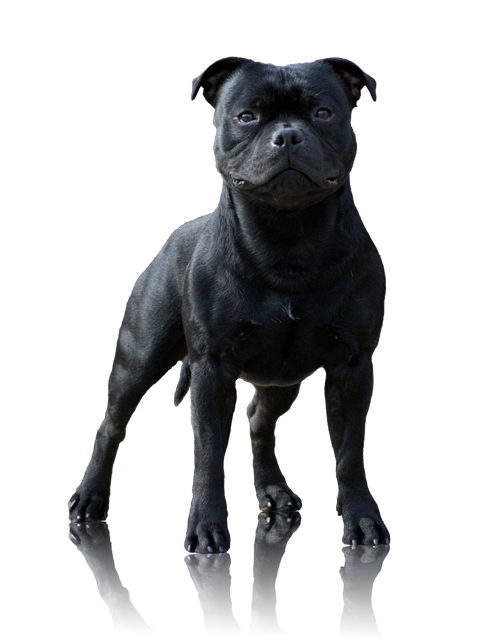 Kevesen tudják, hogy megjelenésében a staffordshire bullterrier áll legközelebb ahhoz a klasszikus "bull and terrier" típushoz, amely a XIX. századra messze földön híres és sikeres gladiátorrá vált. Pedig nem nehéz belátni mindezt, ha az ember egy pillantást vet a valószínűtlen mennyiségű izomkötegekkel büszkélkedő kis dugóra. Noha súlya mindössze 10-17 kg, méretéhez képest elképesztő erővel rendelkezik, amit számtalan egyed különféle súlyhúzó-versenyeken is rendszeresen bizonyít, és ami a bull típusú terrierek sajátja. Aggodalomra azonban semmi ok, hiszen a staffbull roppant fizikai adottságait csupán csak túlcsorduló szeretetének nyomatékos kifejezésére használja, melynek egyetlen célja egy cuppanós kutyapuszi elhelyezése emberbarátja arcán… Ebben változatos technikákat is képesek bevetni. Vannak, akik helyből felpattanva lehelnek csókot az ember homlokára, míg mások két hátsó lábukon pipiskedve, mellső lábukkal igyekeznek felkapaszkodni a csúcsra, közben lenyúzva minden ruhát és kültakarót az illető lábáról. Mindkét technika közös eleme az egyedi staffbull-mosoly és a röfögő, hörgő, prüszkölő, sípoló hangok arzenálja, melyeket általában ilyenkor hallatnak. Első pillantásra kőbaltával faragott külsejük szofisztikált lelket takar. Bull típusú terrierhez méltó módon a staffbullok is hihetetlenül ragaszkodóak. Ez időnként oly mértékű rajongásig fokozódhat, mely egy falka pubertáskorú Justin Timberlake-fan tinilánynak is dicsőségére válna. Szeretetével abszolút nem fukarkodik. Jut belőle bőven a családnak, és a kedvesnek – de minimum közömbösnek – tűnő idegen embereknek is. Mivel rendületlenül pozitív világlátás jellemzi, mindig és mindenkivel azonnal hajlandó barátkozni. A staffordshire bullterrierek legendásan gyöngéd társak, gyermekek mellé pedig egyenesen kötelező választást jelentenek egy négylábú társon gondolkozó gyermekes család számára. Mivel körkörös passzív védelmi rendszerük megközelíti Darth Wader birodalmi cirkálójáét, a csöppségek legfeljebb csak ipari szerszámokkal tudnának kárt tenni bennük, az pedig elég ritka tartozék a babaszobában, szerencsére… Az eddigiekből következik, hogy a staffbull habitusában ideális társasági kutya, mely legjobban gazdája közvetlen közelében érzi magát. Elképzelhetetlen és a kutyalélek ellen merénylettel felérő bűn, ha ezt a fajtát kirekesztve, kennelben elzárva megfosztanák az emberrel való közvetlen kapcsolatától.